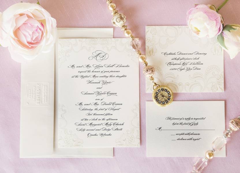 For their invitations, they had custom letterpressed invitations in hues of white and pinks printed with calligraphed details. Can never go wrong with cursive invites!