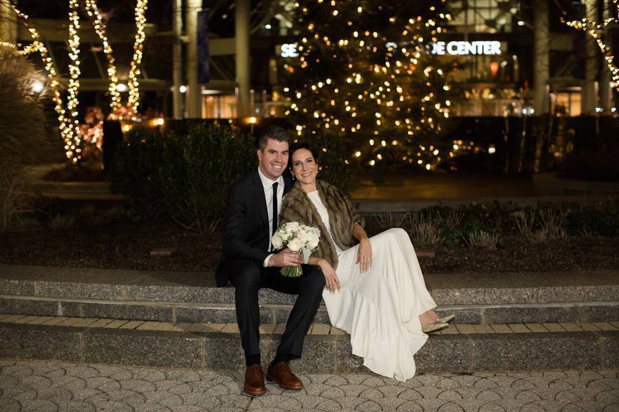 The sweet first look in the atrium of the hotel.